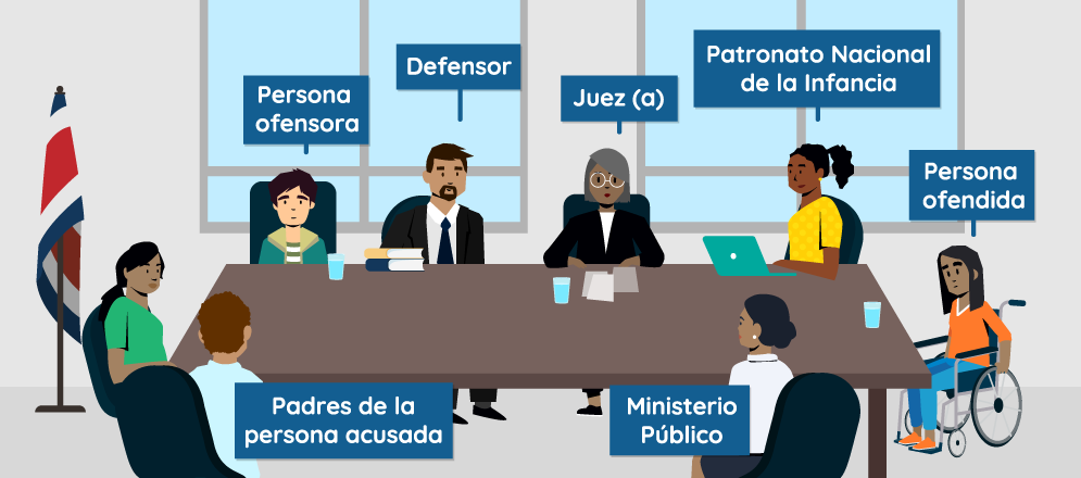 Durante esta fase se convoca a las personas involucradas para realizar el juicio oral y privado, en el que se determina la responsabilidad de la persona menor de edad, el daño causado, y luego se acuerda la sanción por el hecho cometido.